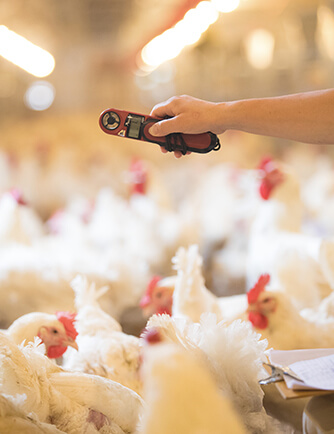 我们设计开发了一个远程控制实时数据信息平台以在整个饲养过程中24小时仔细监察及保持各种鸡场及肉鸡场的最佳温度及湿度。该信息平台监测并显示肉鸡场及种鸡场的主要经营指针,包括实时温度、湿度、动物采食量、饮水量及通风。通过种鸡场及肉鸡场的内置报警系统及数据信息平台,可以及时发现并解决异常情况。此外,本集团会分析该数据信息平台的数据库所保存的育种数据,有助于本集团根据分析结果持续改善养殖环境及繁殖性能。